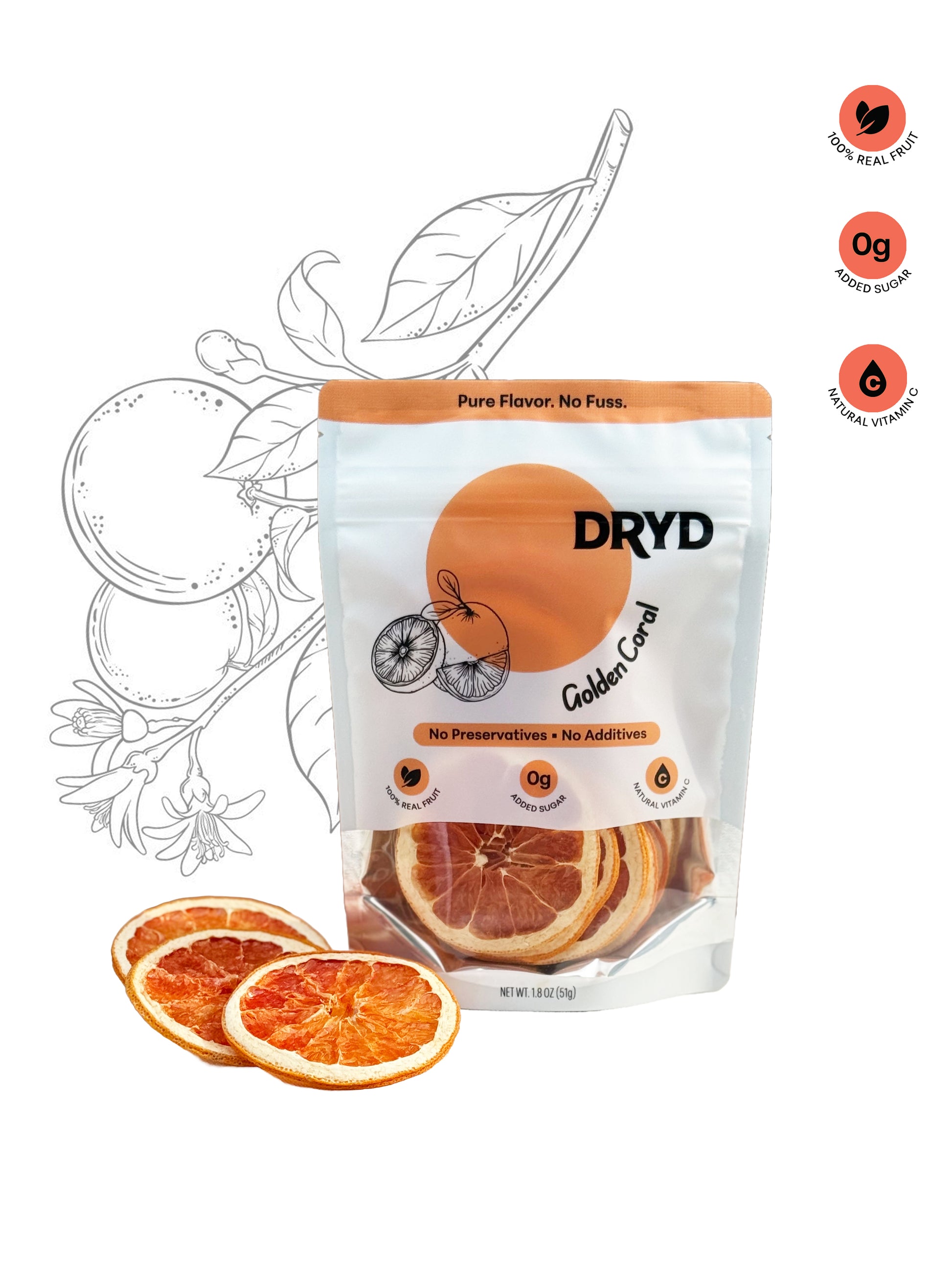 Tart meets sweet in Dryd’s Dehydrated Grapefruit slices. With soft coral centers that glow against their golden edges, they add instant sparkle to every sip. Drop them into sparkling water for a twist, layer them on a dessert for a gourmet touch, or let them brighten a table spread.